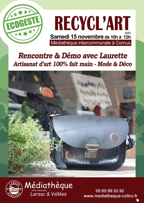 Du mercredi 5 novembre au vendredi 5 décembre, la médiathèque s’associe au service déchets de la Communauté de communes Larzac et Vallées (CCLV) pour proposer un mois d’animations autour de la réduction des déchets, du recyclage et du réemploi.